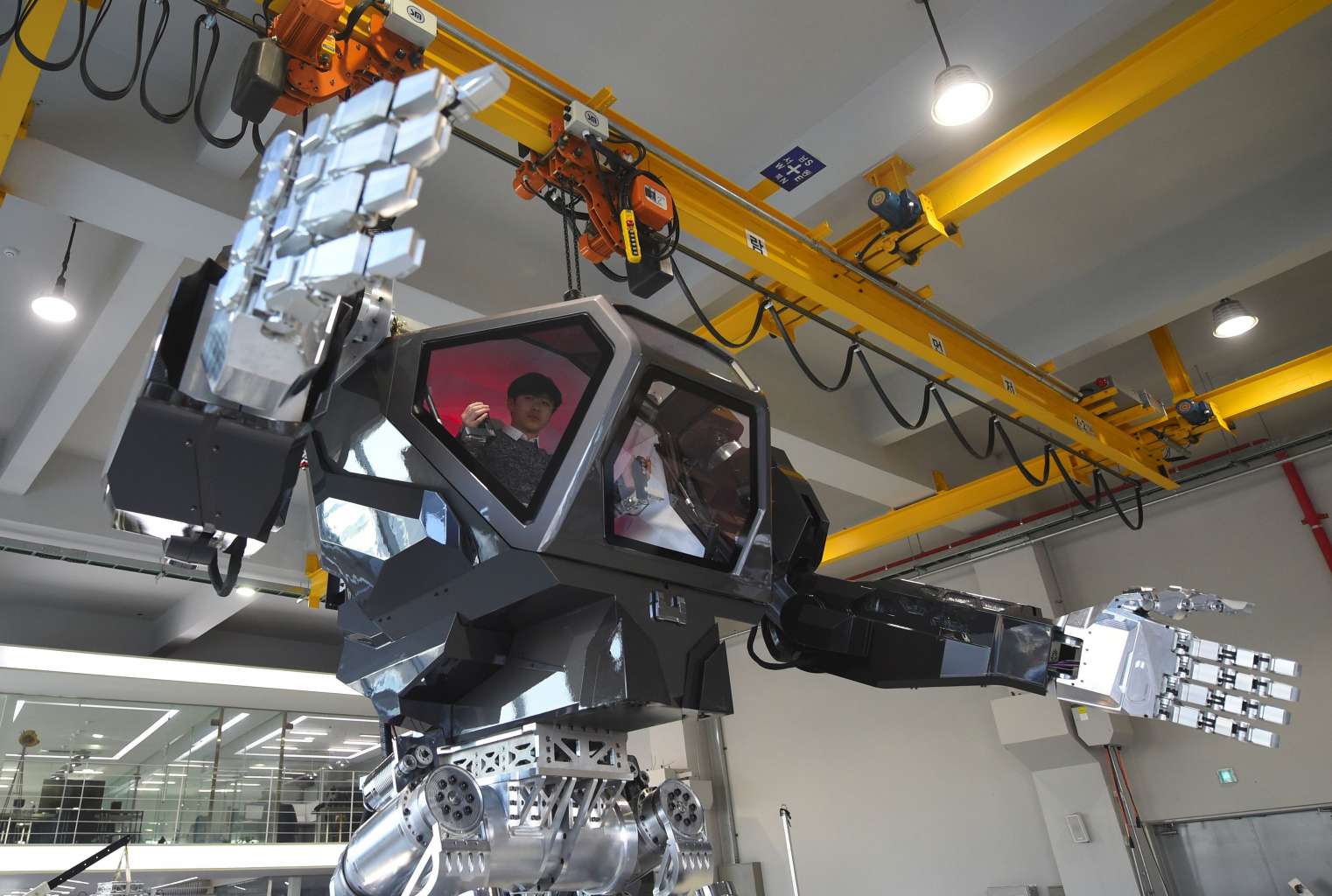 Engineers test a four-metre-tall humanoid manned robot dubbed Method-2 in a lab of the Hankook Mirae Technology in Gunpo, south of Seoul, on Dec 27, 2016.