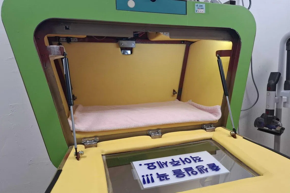 The baby box is installed in front of Jusarang Church, which operates Babybox Korea. Once a baby is placed inside, an alarm alerts the staff, who transfer the infant to a care room.