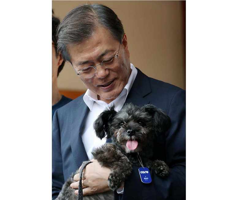 Mr Moon's predecessor had faced criticism for leaving behind nine Korean Jindo breed dogs at the Blue House when she was removed from office over a corruption scandal.