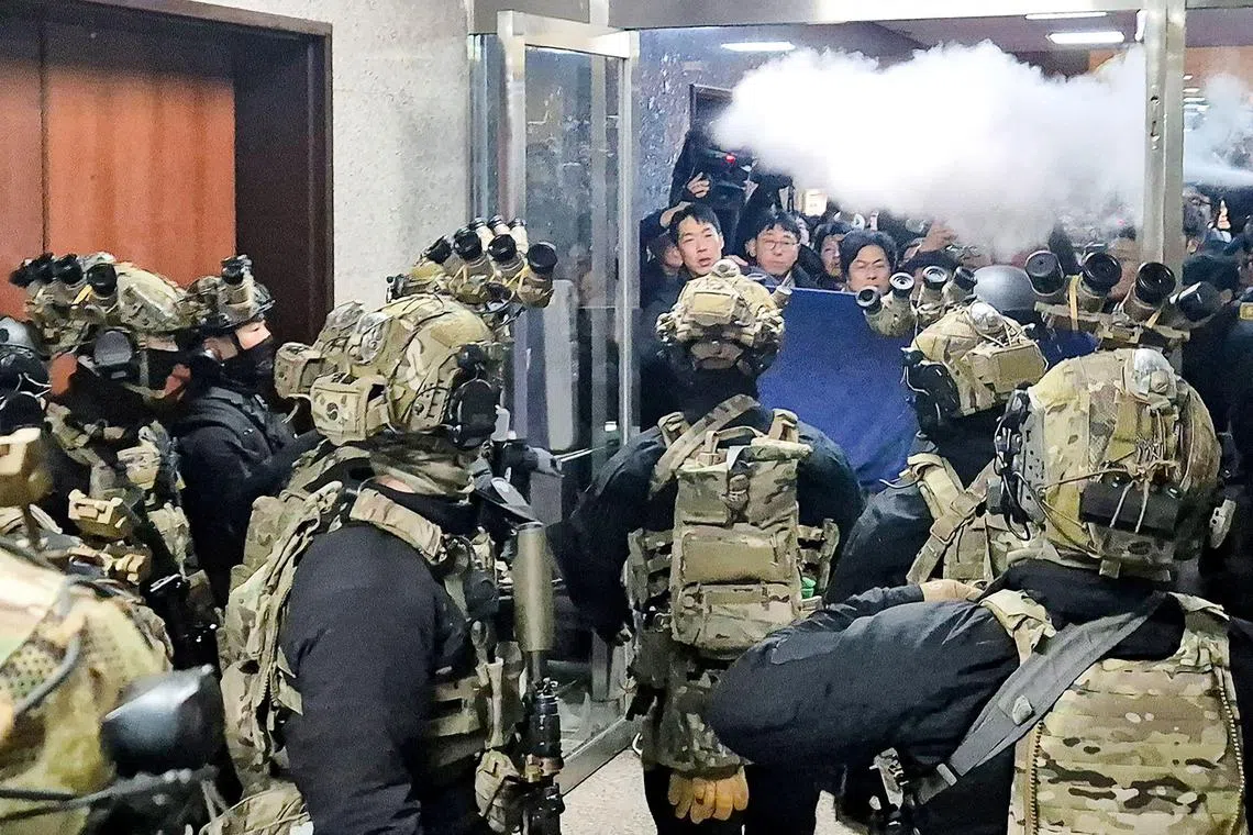 Soldiers trying to enter the main hall of the National Assembly on Dec 3, after South Korean President Yoon Suk Yeol declared martial law.
