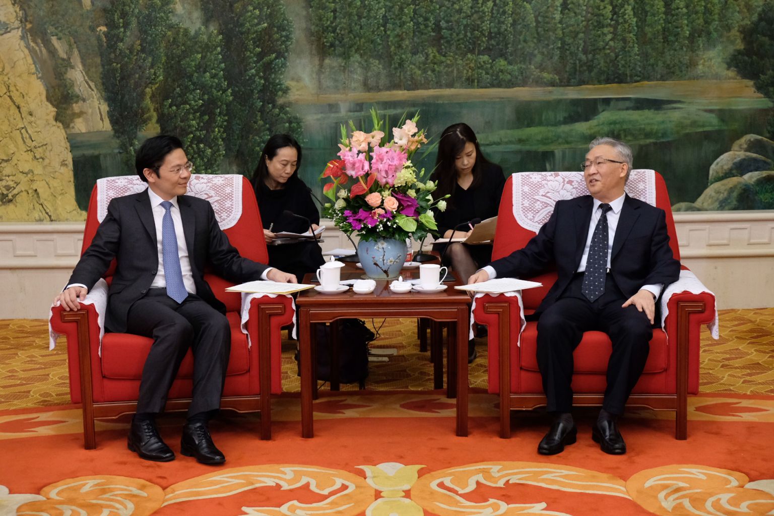 National Development Minister Lawrence Wong meeting Tianjin mayor Zhang Guoqing at the Tianjin Guesthouse on Sept 27, 2018.