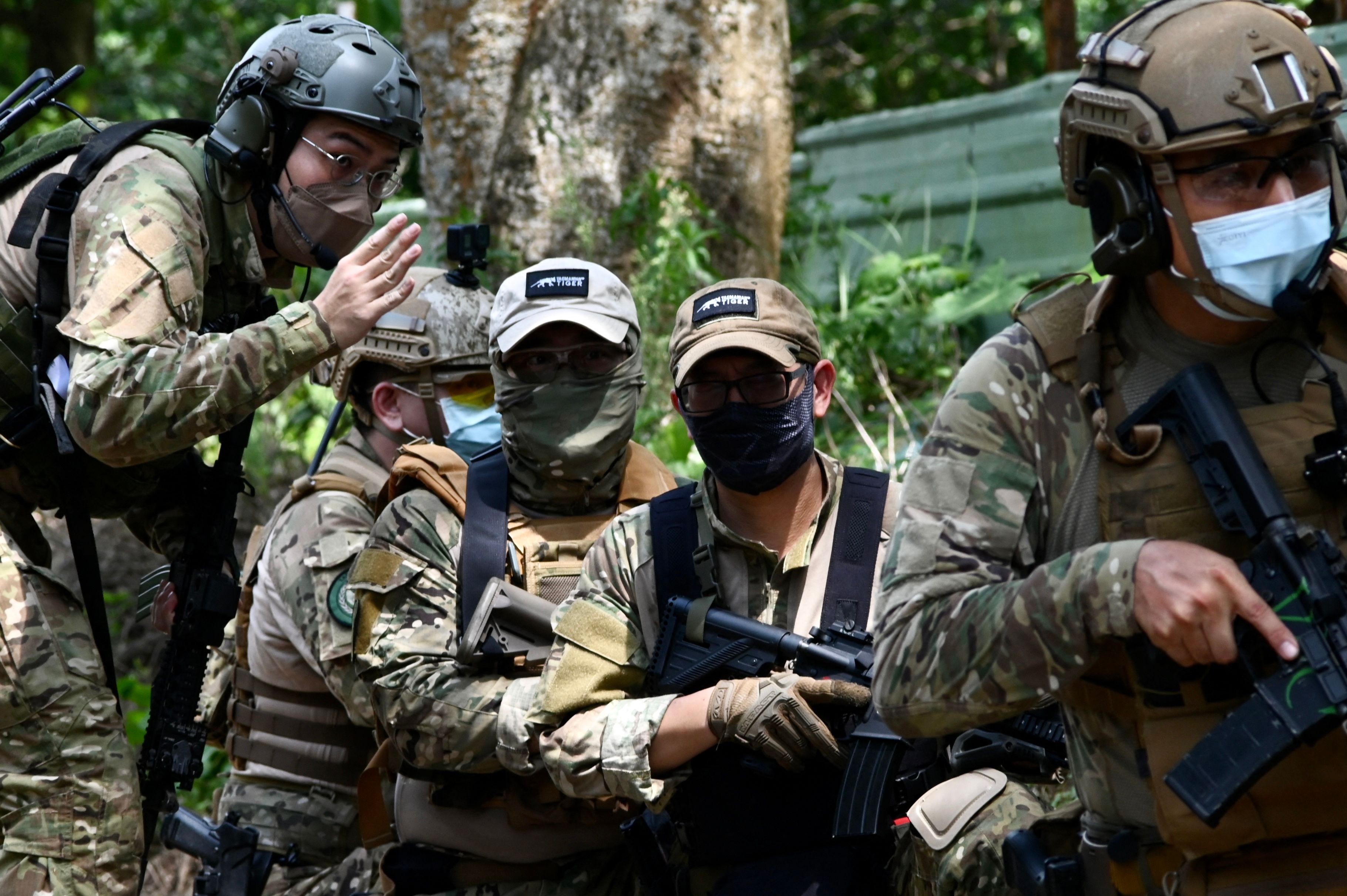 Citizens taking part in a private military course at a training field in New Taipei City, Taiwan, on June 18, 2022.