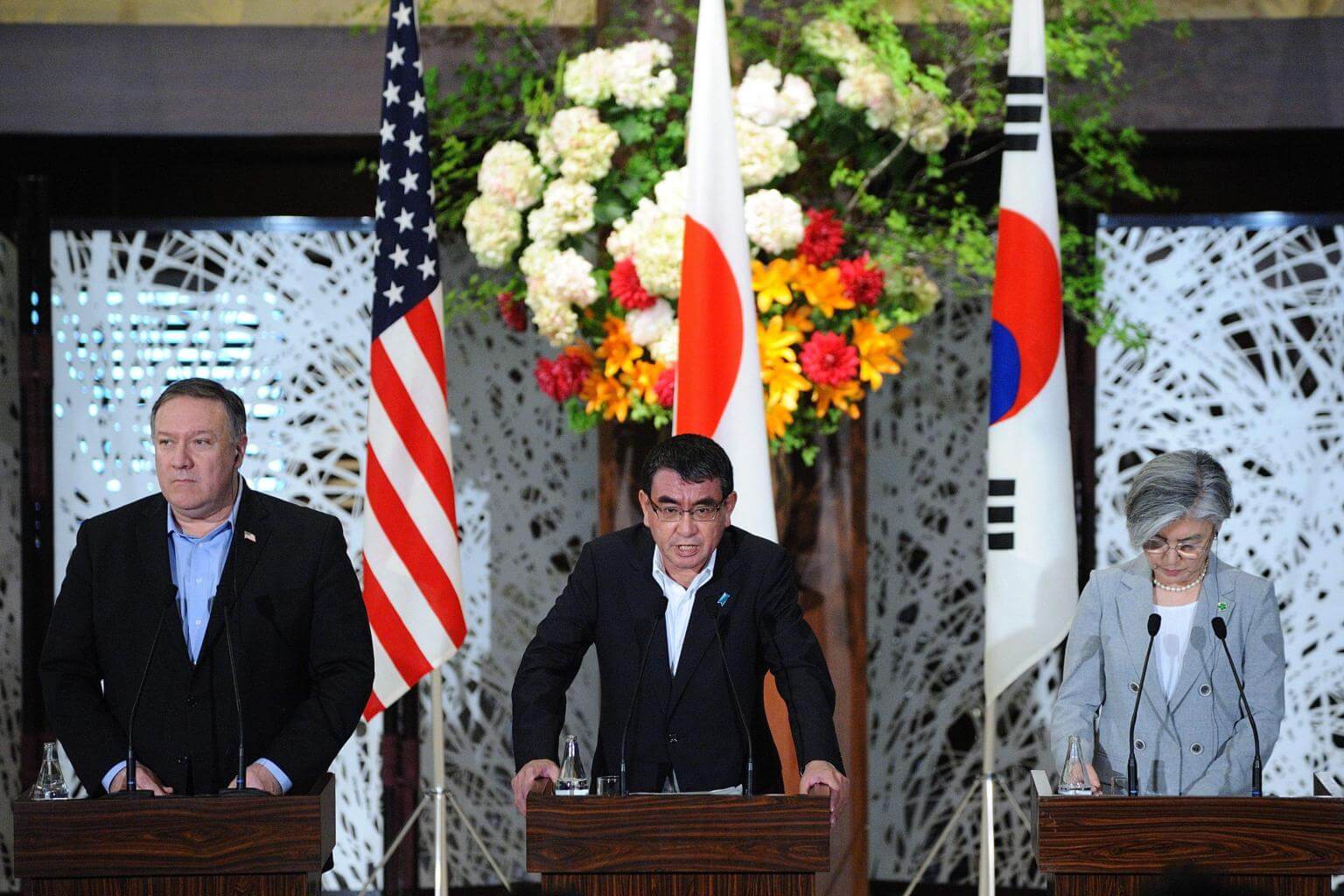 Japanese Foreign Minister Taro Kono, together with US Secretary of State Mike Pompeo and South Korean counterpart Kang Kyung-wha, stressed the stiff sanctions regime as they highlighted their watertight coordination on North Korea.