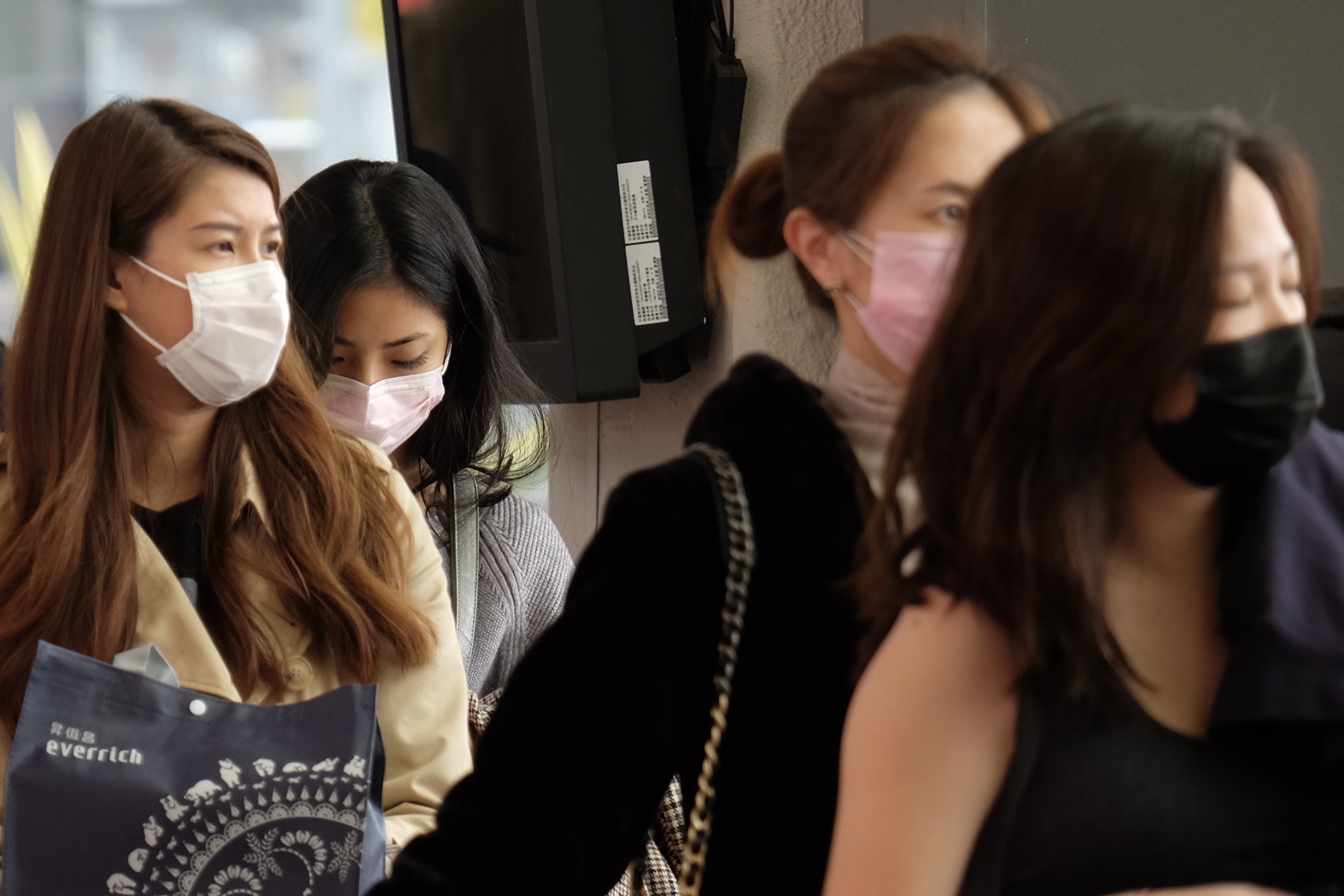Masked passengers arrive at the Sungshan Airport in Taipei on Jan 22, 2020.