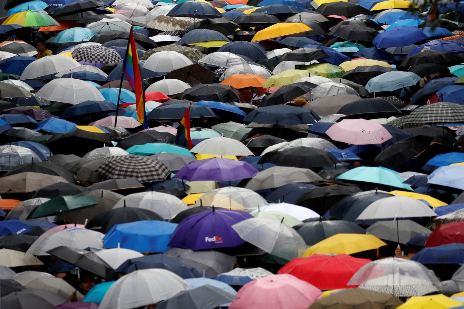 Members of the public holding umbrellas in Taipei. Typhoons regularly hit Taiwan in the second half of the year.