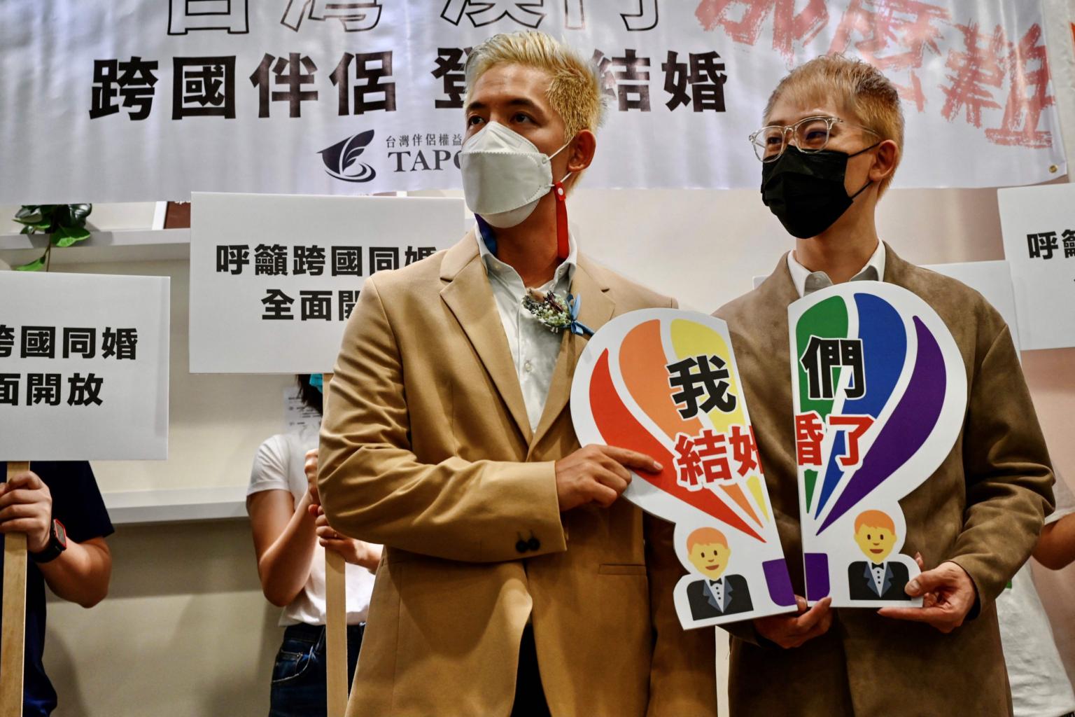 The couple have co-founded a group to help more than 100 Taiwanese whose partners are from countries where same-sex marriage is not legal, including China, Japan, Thailand, and Vietnam.