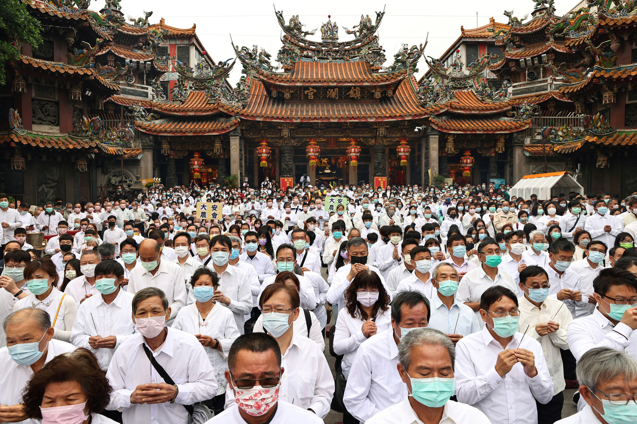<p>People holding joss sticks pray to the sea goddess Mazu to wish for rain amid an island-wide drought, during a religious ceremony at Jenn Lann Temple in Taichung, Taiwan March 7, 2021. Picture taken March 7, 2021. REUTERS/Ann Wang</p>
