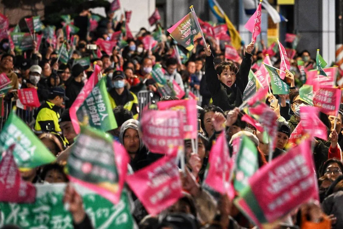 Supporters cheering at the Democratic Progressive Party rally on election night in Taipei on Jan 13.