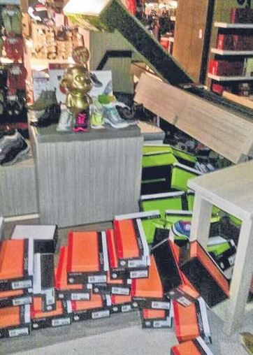 When Mr Luo visited his shop, he found toppled display shelves, burst water pipes and shoe boxes strewn all over the floor, Zaobao reported.