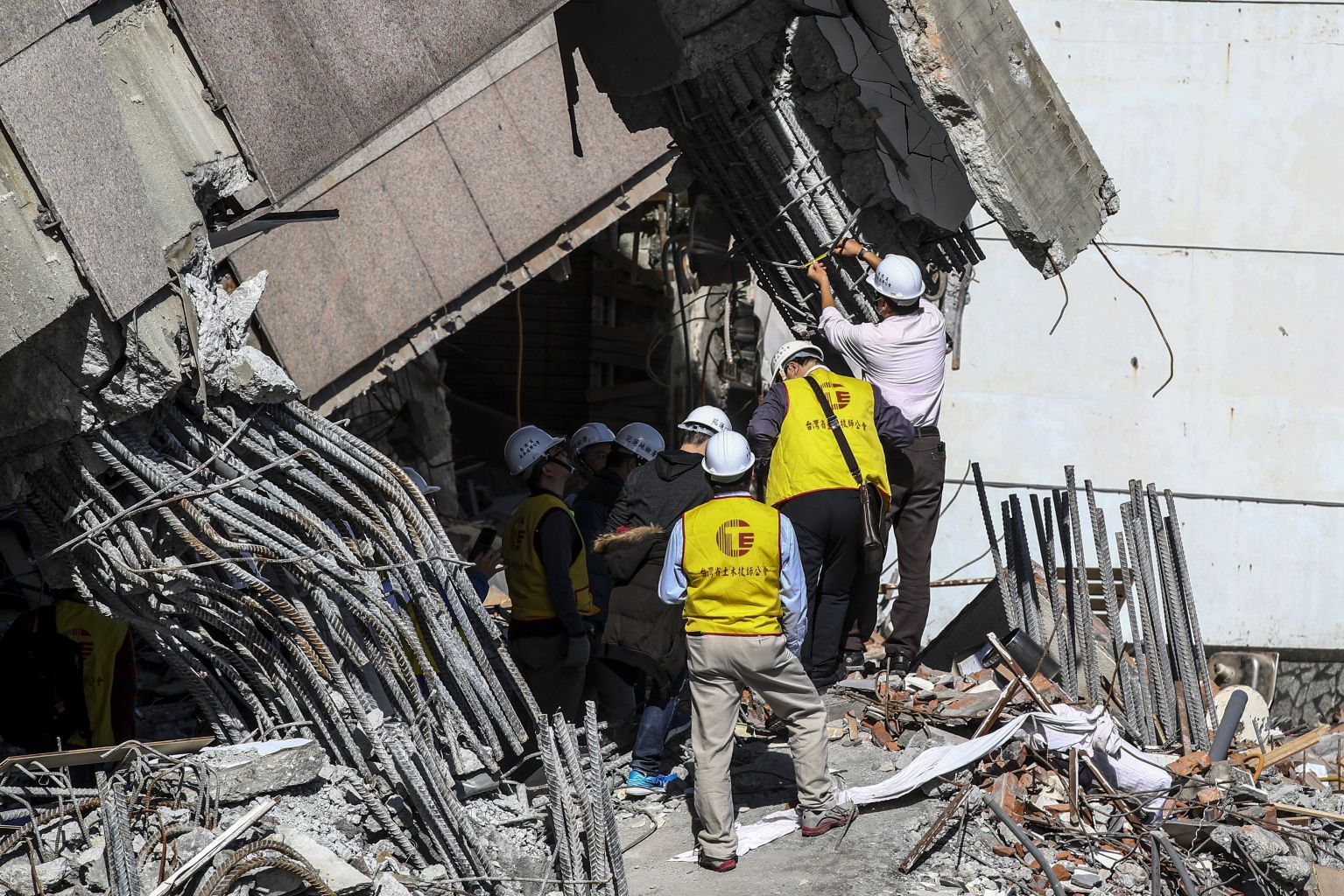 Scores of rescuers combed the rubble at the foot of the 12-storey Yun Tsui apartment block that was left leaning at around a 50-degree angle by the quake, complicating rescue efforts due to fears of an imminent collapse.