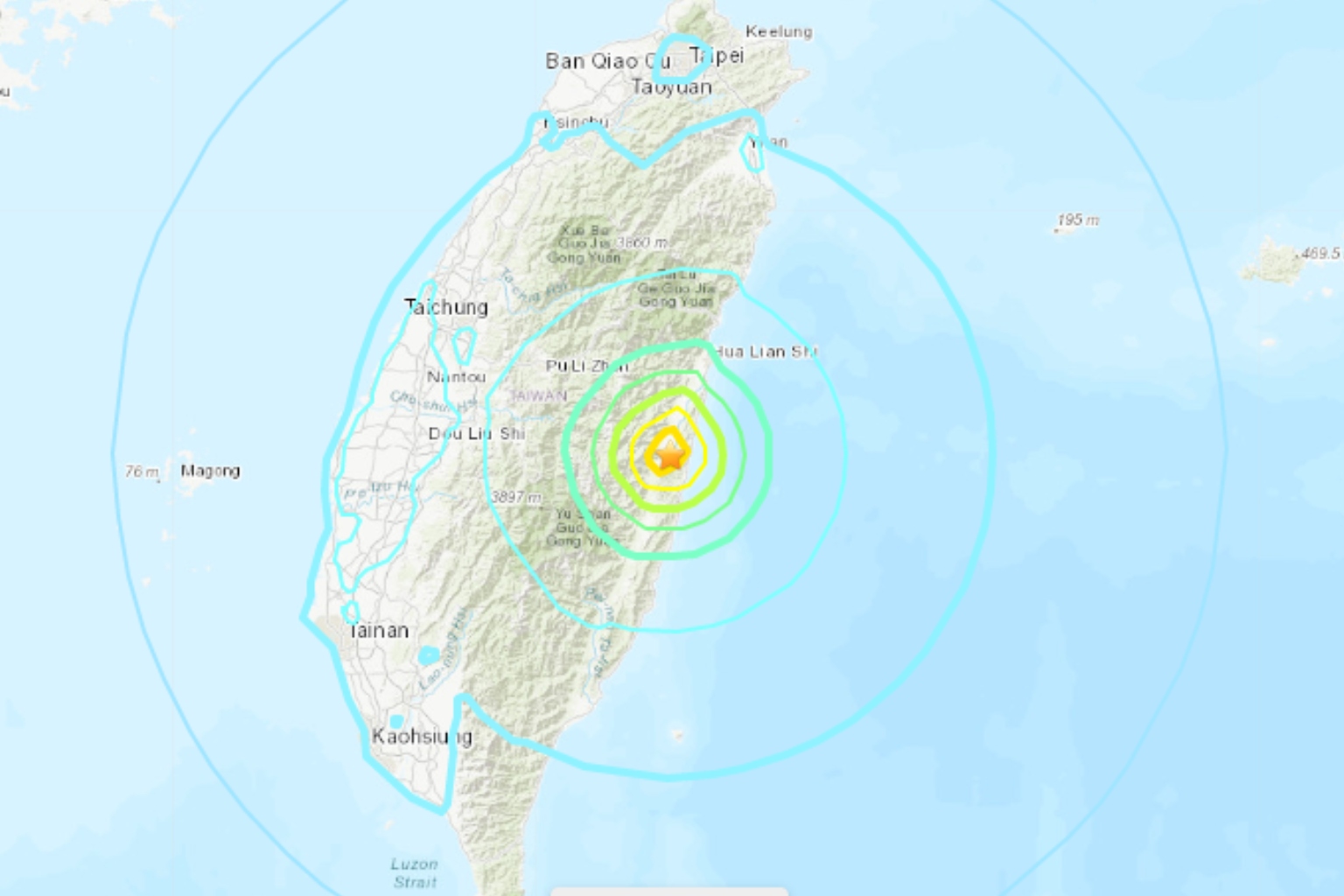 The quake had a depth of 6.8km with its epicentre in Hualien county.