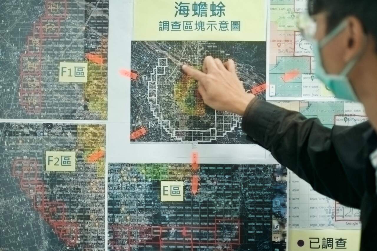 "We have divided (the township) into 200 by 200 metres square grids to investigate one by one if there are marine toads present," field researcher Lin Yong-lun said, pointing to a series of colour-coded maps.