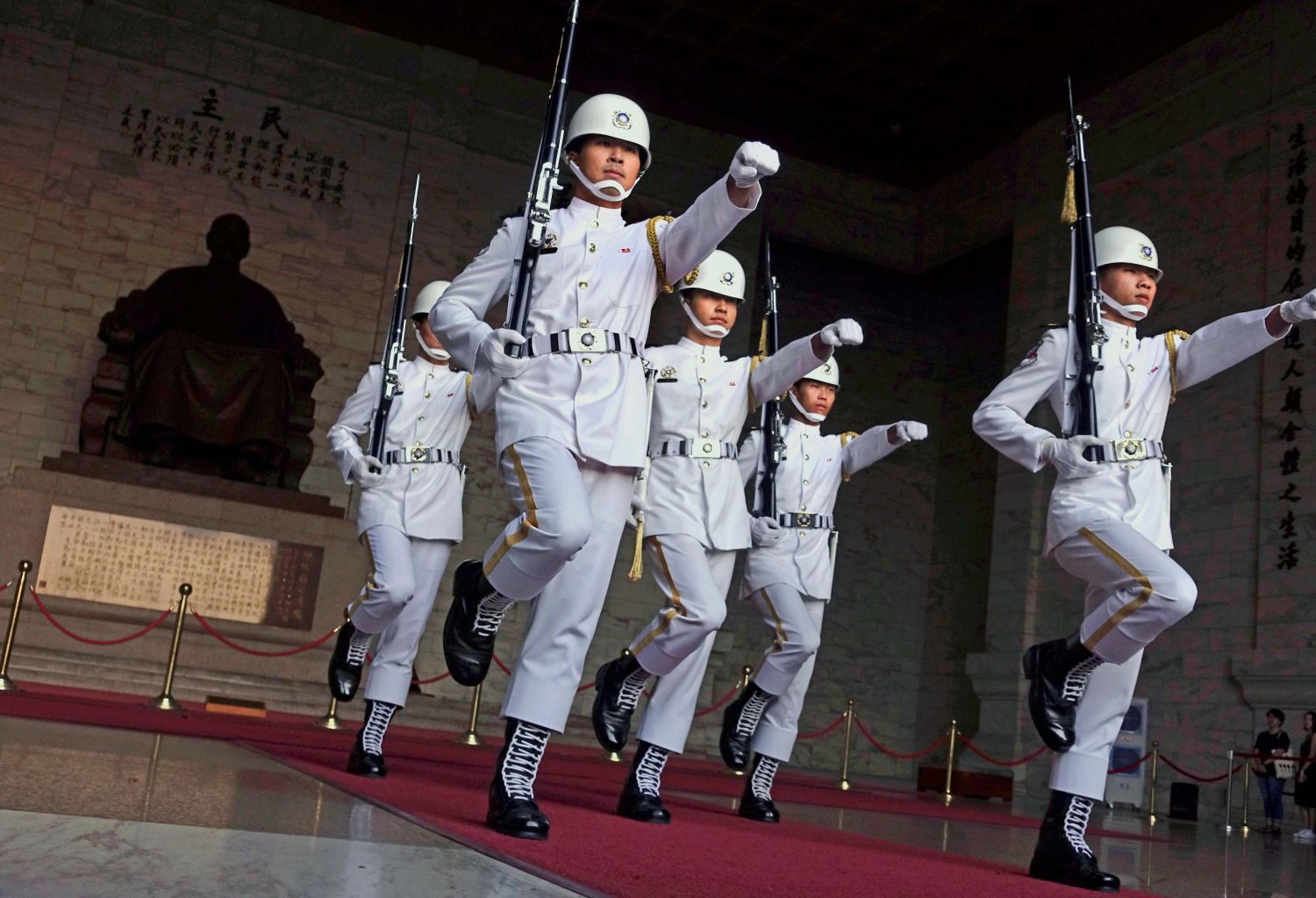 The changing of the guard at the Chiang Kai-shek Memorial Hall in Taipei, Taiwan, on Sept 22, 2019. Taiwan remains a sore point to this day among party leaders in Beijing.