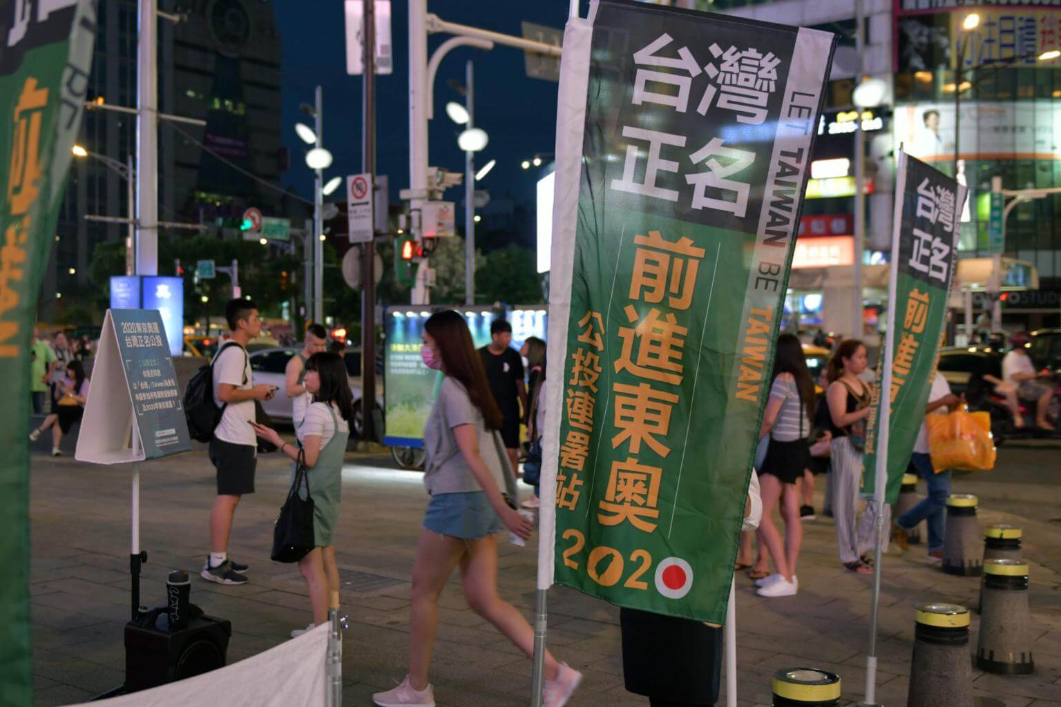 File photo of flags placed by pro-Taiwan independence activists to promote a referendum on the streets in Taipei, on July 26, 2018.