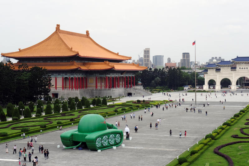 Giant balloons in the shape of a Chinese military tank and Tank Man are placed at the Liberty Square, ahead of June 4th anniversary of military crackdown on pro-democracy protesters in Beijing's Tiananmen Square, in Taipei, Taiwan, on May 21, 2019.