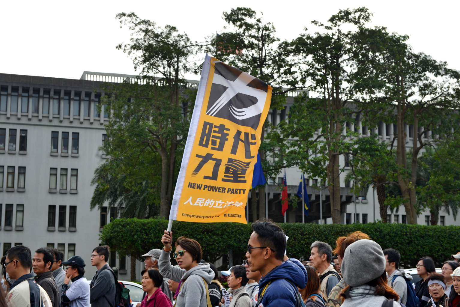 A member of the New Power Party displaying the party flag during a protest against food safety in Taipei on Dec 12, 2015.