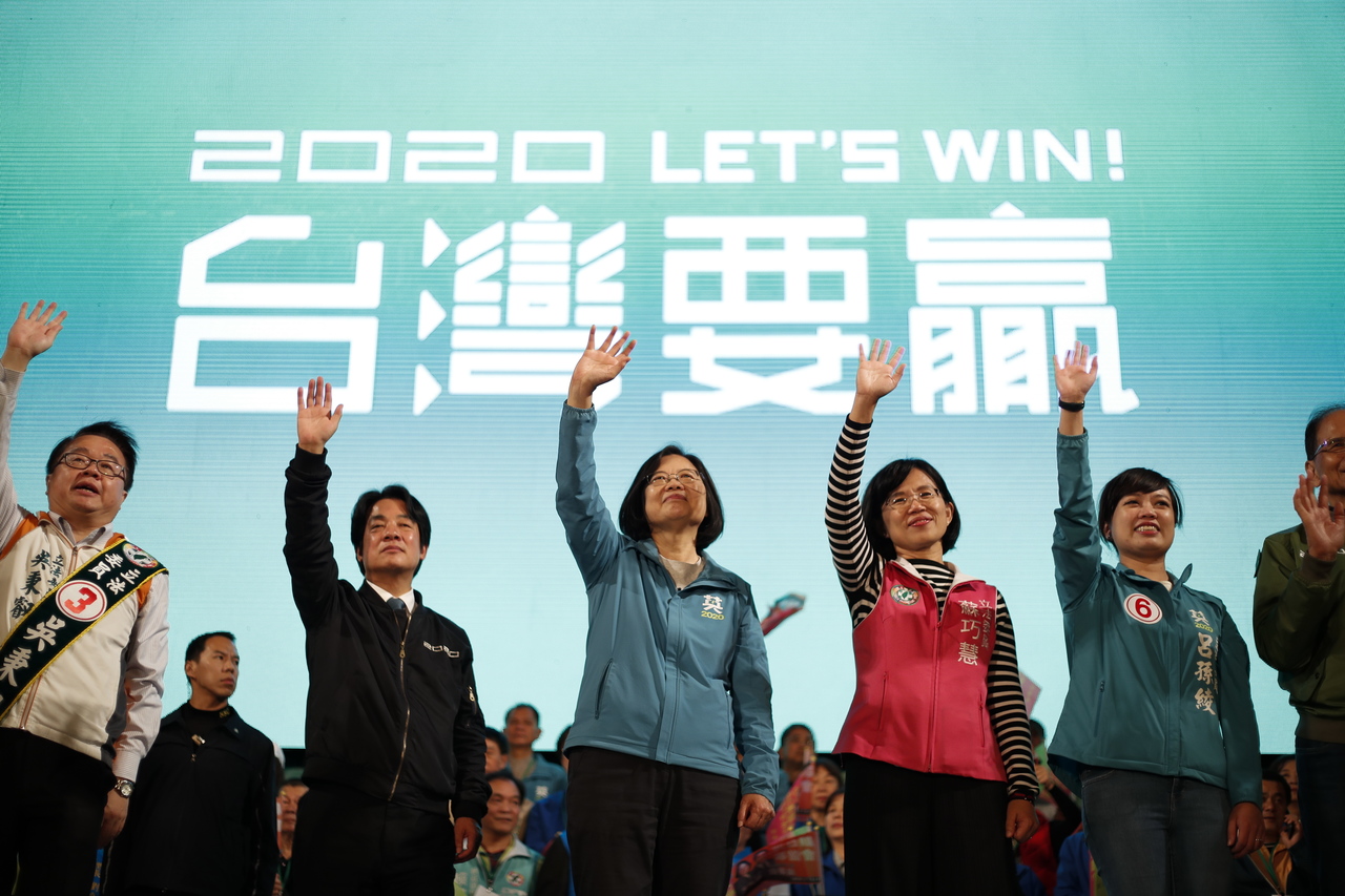 Taiwan President Tsai Ing-wen (centre) waves at supporters during an election campaign in New Taipei City, on Jan 5, 2020.