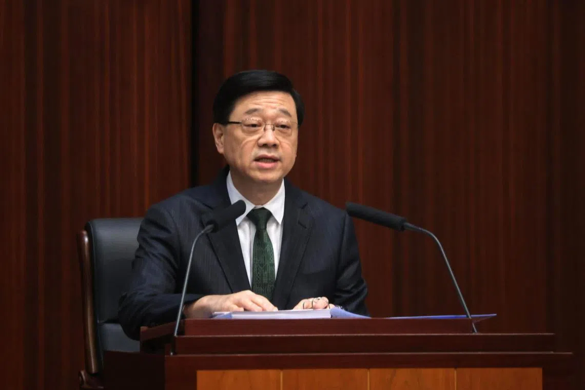 Hong Kong Chief Executive John Lee delivering his policy address at the Legislative Council in Hong Kong on Oct 16.