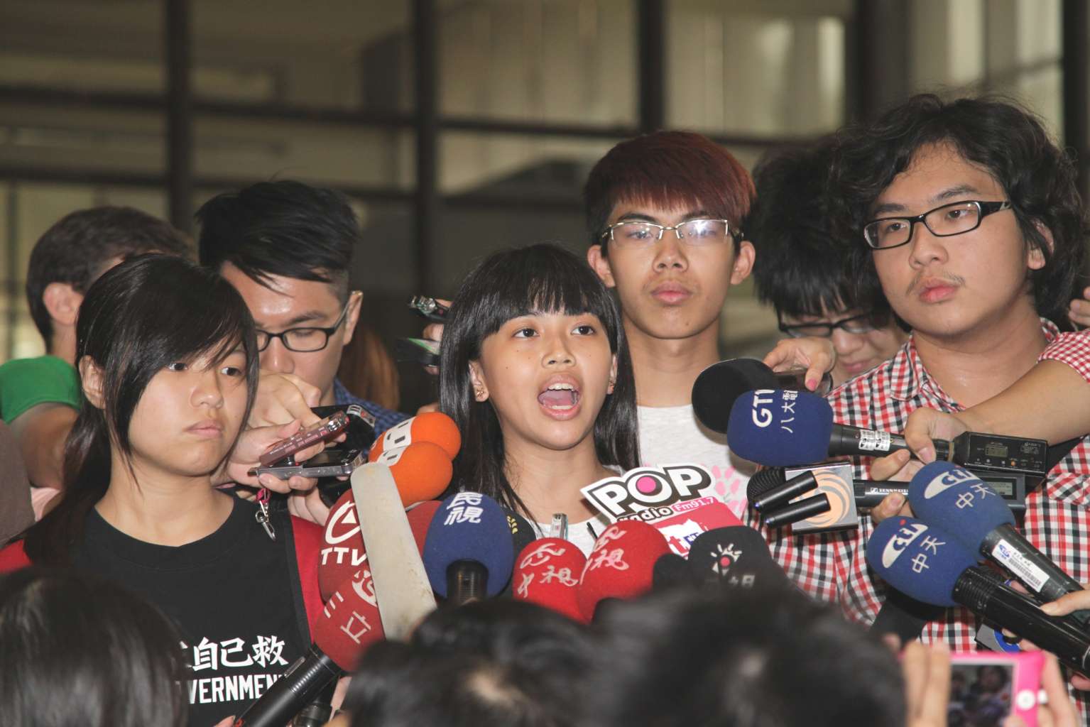 Taiwanese student leader Wang Pin-chen (centre) speaks to reporters before their meeting with Taiwan's Education Minister Wu Se-hwa (not pictured), demanding him to scrap 'China-centric' school curriculum's guidelines and his resignations, in Taipei, Taiwan, on Aug 3, 2015.