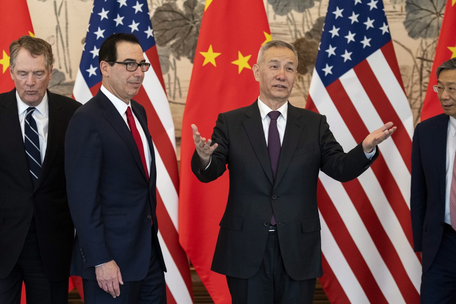 (From left) US Trade Representative Robert Lighthizer, US Treasury Secretary Steven Mnuchin, Chinese Vice-Premier Liu He, and People's Bank of China governor Yi Gang, in Beijing on March 29, 2019.