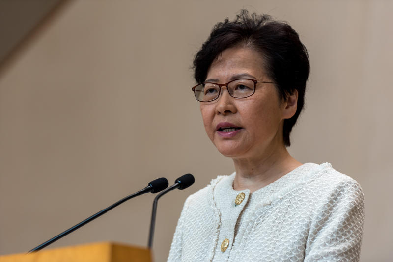 A photo taken on Sept 10 shows Hong Kong Chief Executive Carrie Lam during a press conference in Hong Kong.