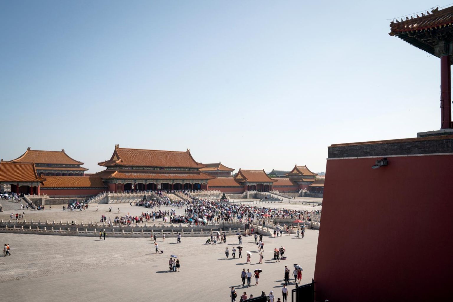 The most striking aspect of the Forbidden City today is that the great walls around it are now mostly open to the public as spectacular walkways, allowing a drone-like view of the grounds. Only the very western wall, which overlooks Zhongnanhai, the equivalent of China's White House, is off limits.