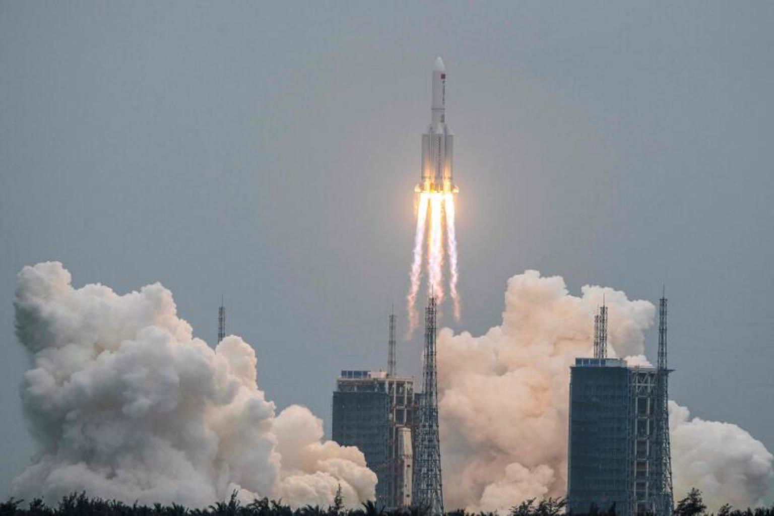 A Long March 5B rocket carrying China's Tianhe space station core module lifting off from the Wenchang Space Launch Center in Hainan, China, on April 29, 2021.