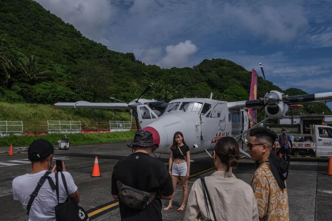 Tourists who just arrived by air on the 17-square-mile volcanic island of Lanyu, traditional home of the indigenous Tao tribe.