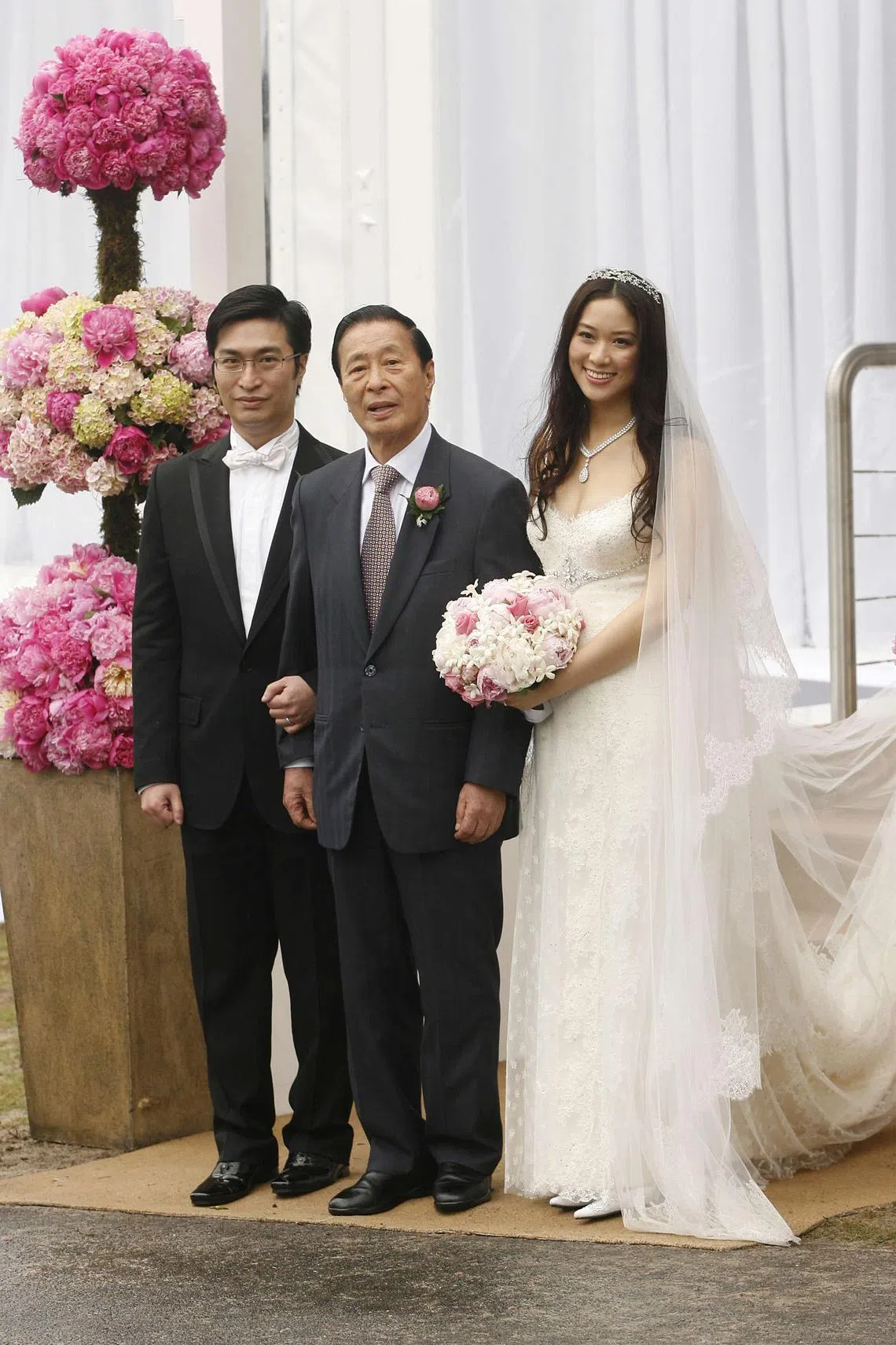 Tycoon Lee Shau Kee (centre) with son Martin Lee and daughter-in-law Cathy Chui at their wedding in 2006.