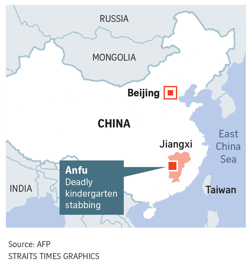 BEIJING (AFP) - Three people were killed and six others wounded in a knife attack on Wednesday (Aug 3) at a kindergarten in southeast China’s Jiangxi province, police said.