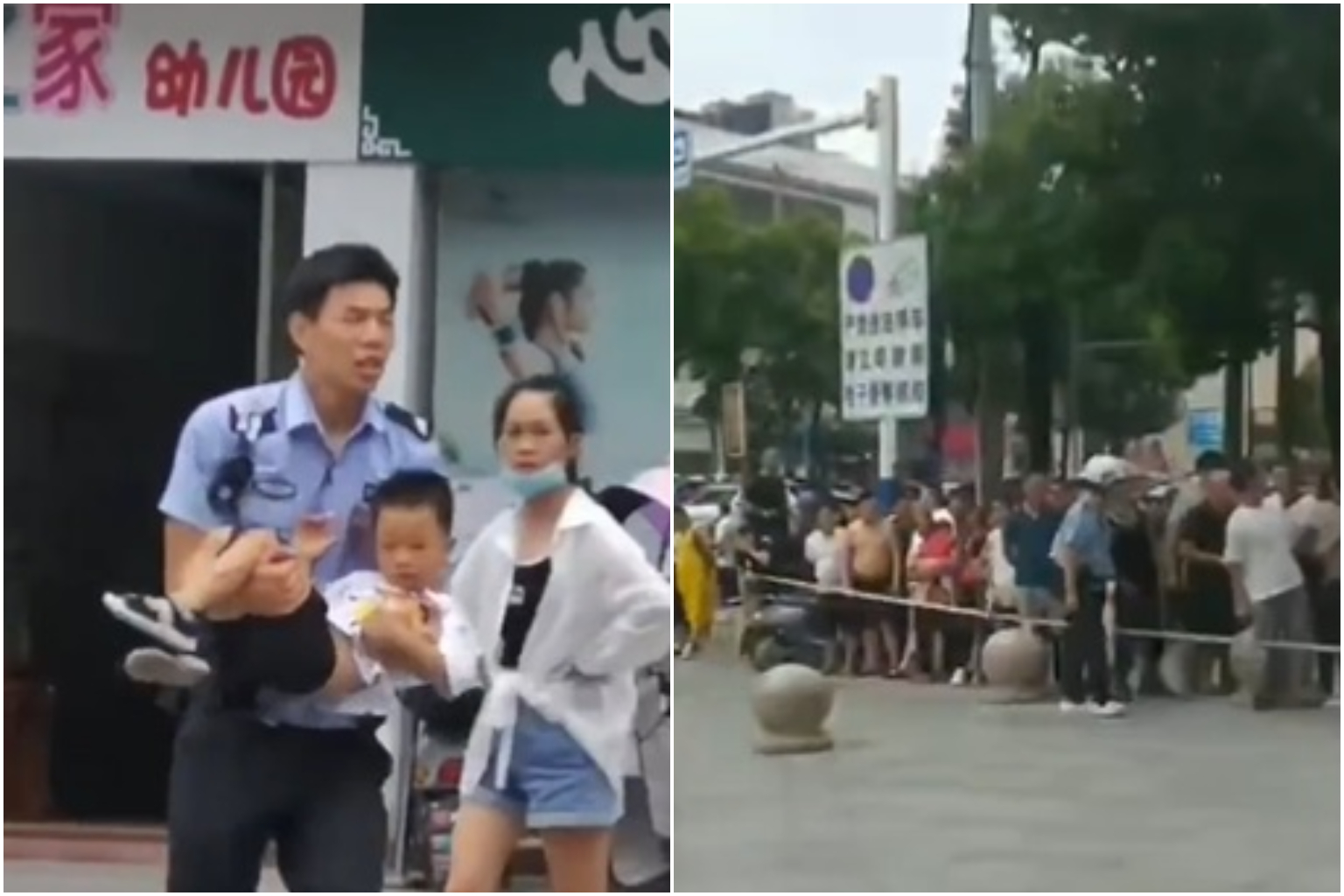 In a video of the scene shared by state-run Beijing Daily, a police officer can be seen carrying a tiny child in his arms to an ambulance.
