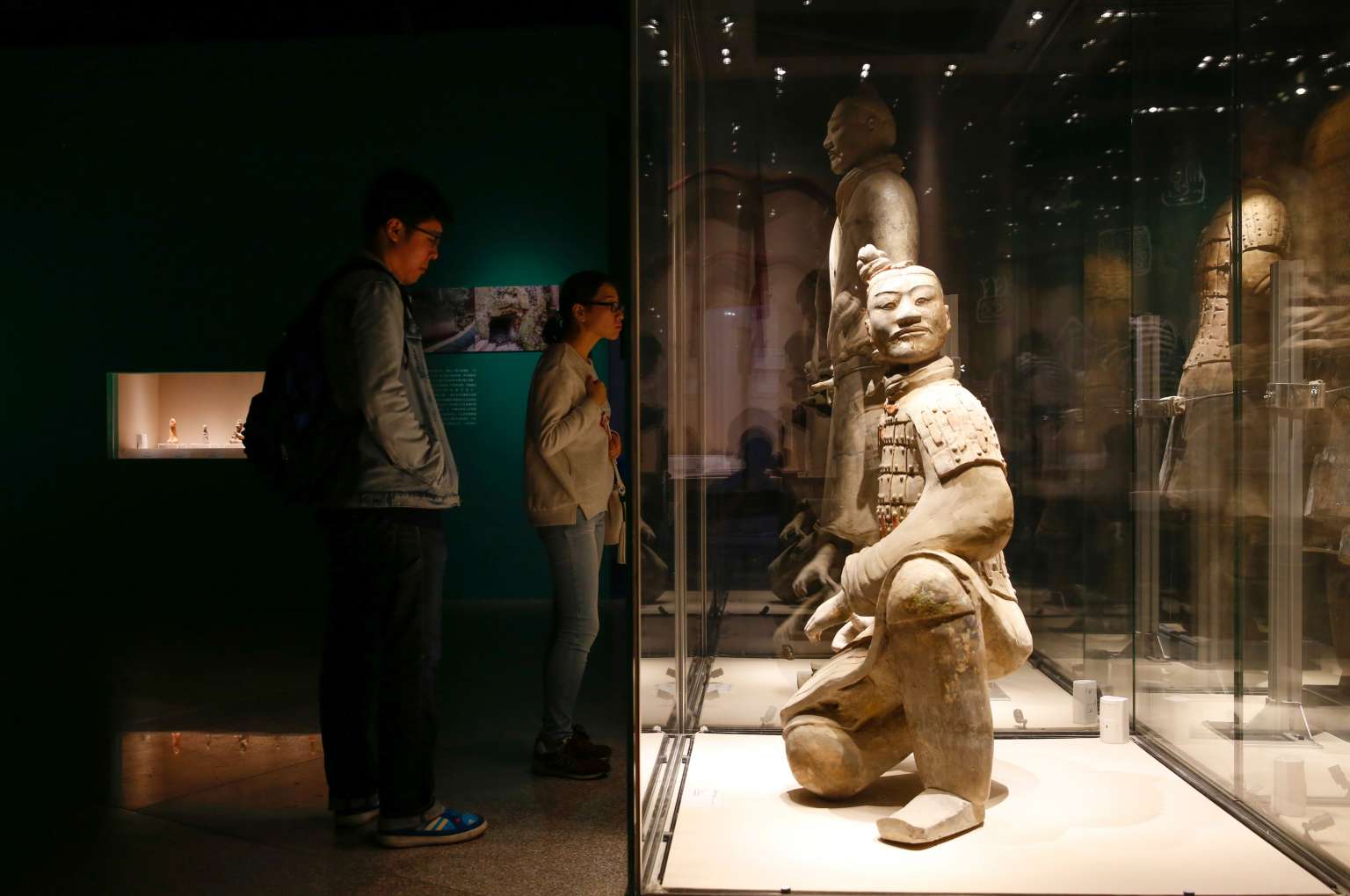 Visitors looking at terracotta warriors on display at the Terracotta Warrior Museum in Xi'an, Shaanxi province, on Oct 21, 2016.