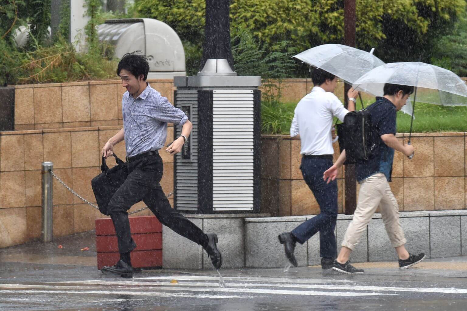 Pedestrians walking under heavy rain in Tokyo, on Aug 15, 2019. Typhoon Faxai is forecast to reach coastal areas near Tokyo in the late hours of Sunday (Sept 8).