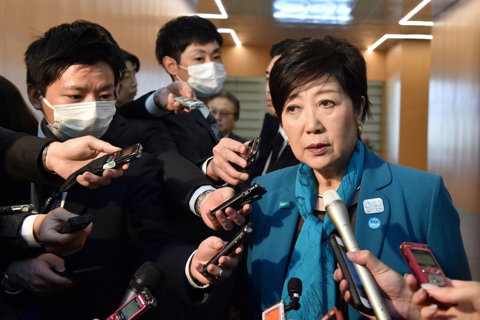 Tokyo Governor Yuriko Koike speaks to reporters after a meeting at the prime minister's office in Tokyo on March 12, 2020.