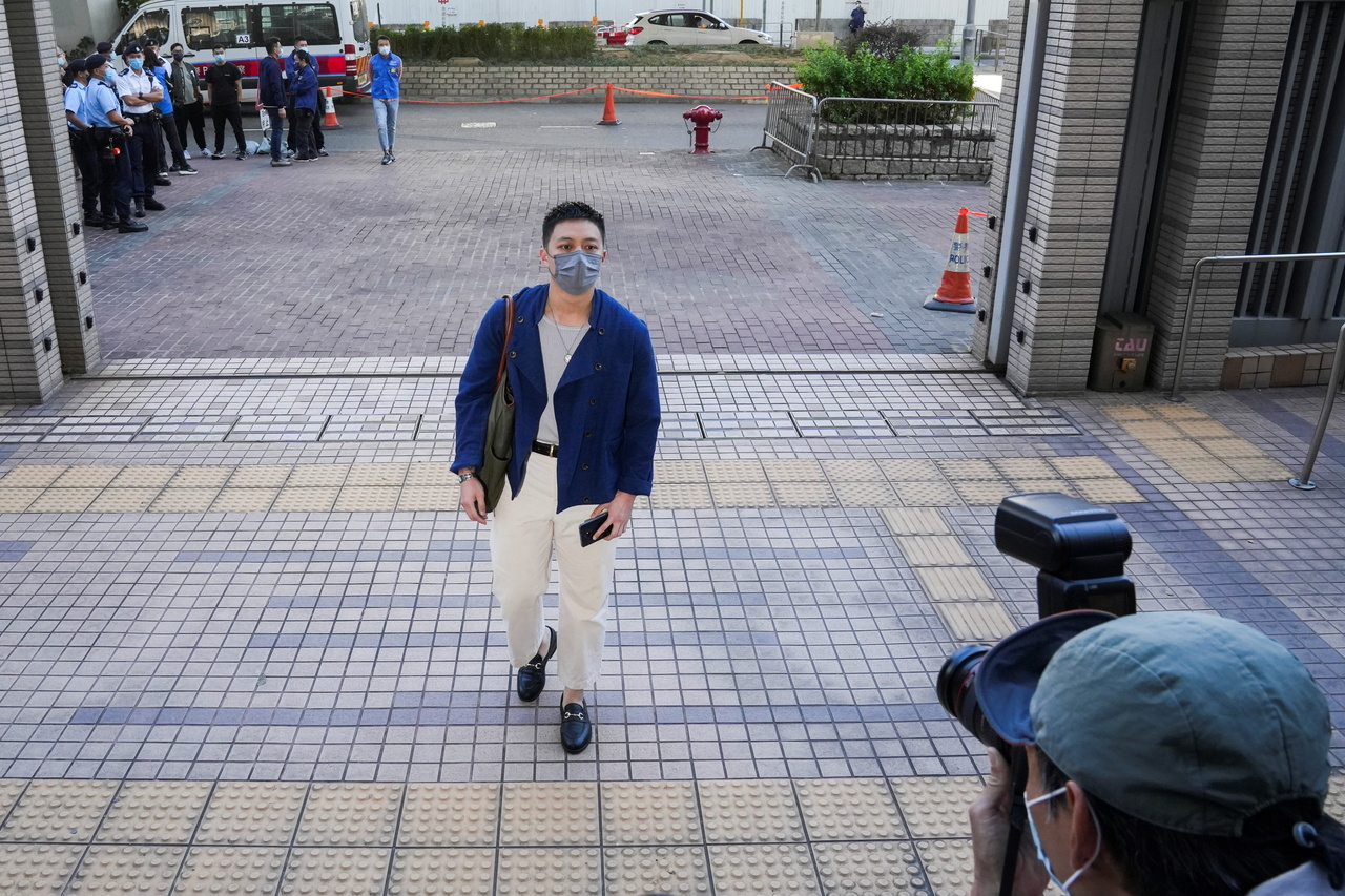 One of the 47 pro-democracy activists arriving at a courthouse in Hong Kong on Nov 29, 2021.