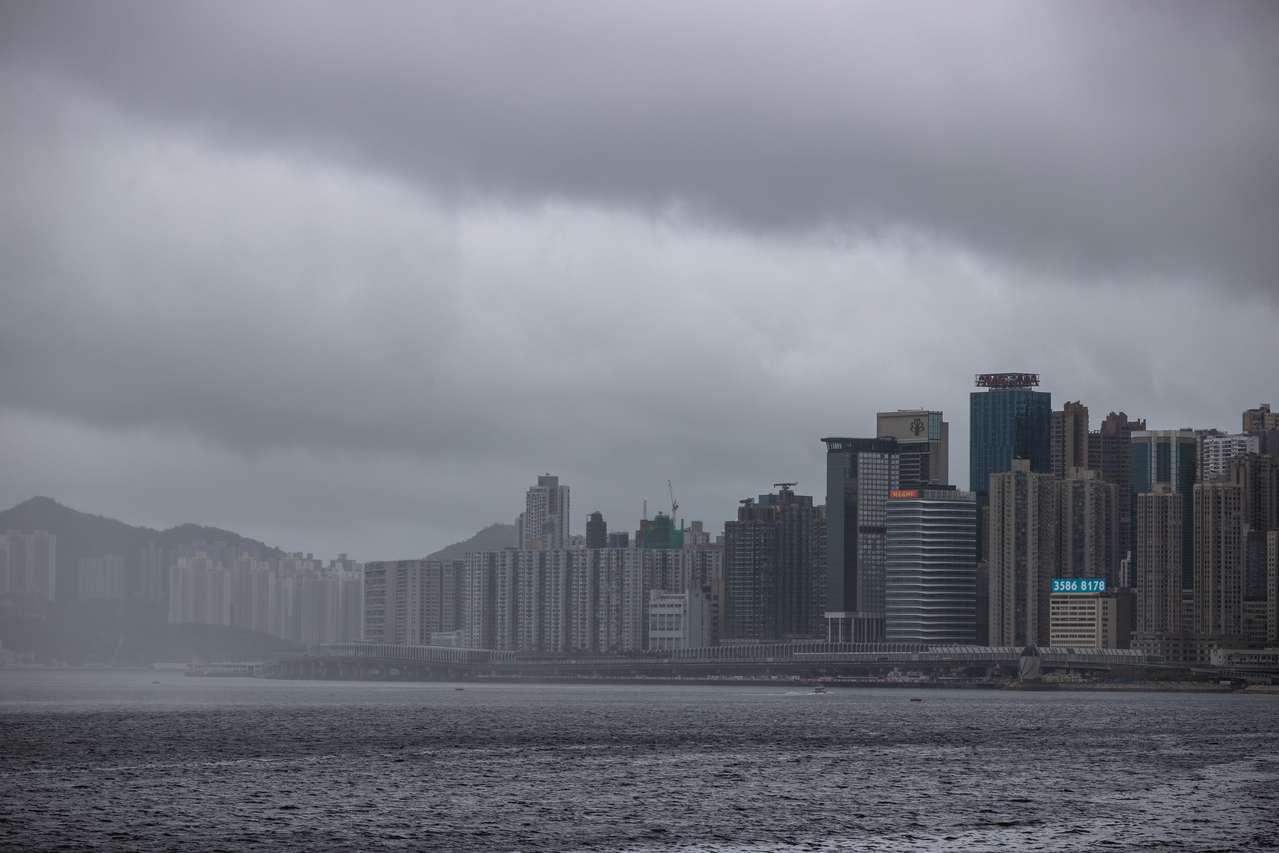 Heavy rain in Victoria Harbour in Hong Kong on Aug 9, 2022, as Mulan edged closer to the city.