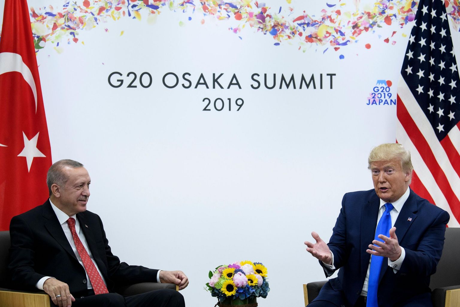 Turkey's President Recep Tayyip Erdogan (left) and US President Donald Trump at a bilateral meeting during the G-20 Summit in Osaka, Japan on June 29, 2019.