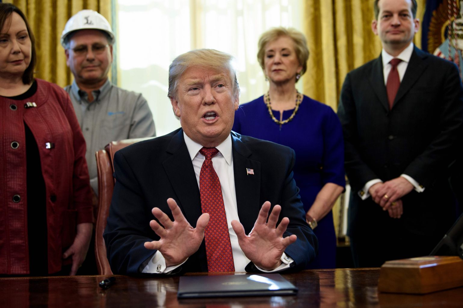 Trump speaking during an executive order signing in the Oval Office of the White House.