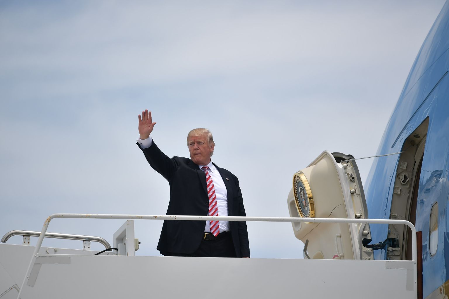 US President Donald Trump makes his way to board Air Force One before departing from Naval Air Station Key West in Key West, Florida, on April 19, 2018.