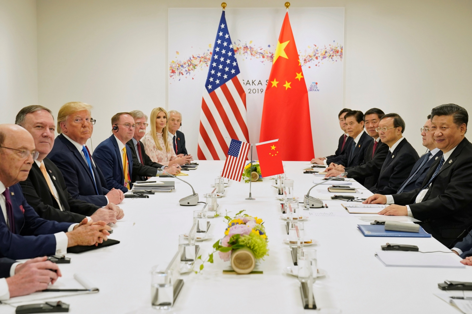 Representatives of the US and China at the meeting between US President Donald Trump (third from left) and his Chinese counterpart Xi Jinping (right) at the G-20 Summit.
