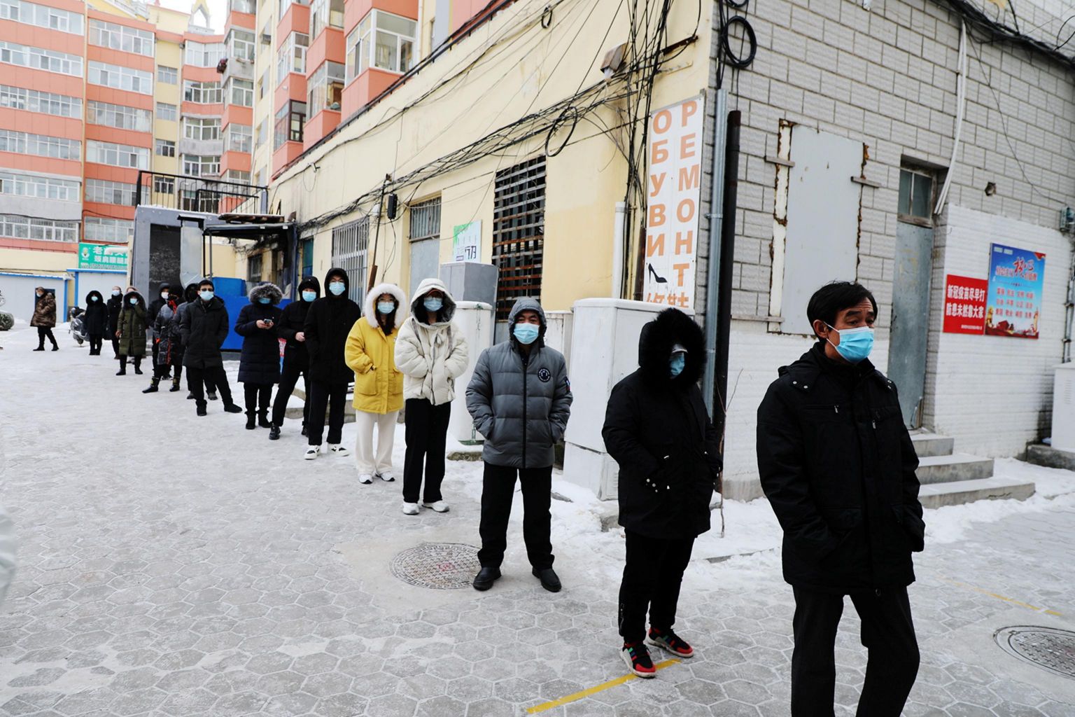 Residents line up for testing in Manzhouli, Inner Mongolia, on Nov 28, 2021. The northern areas of China are seeing a fresh virus resurgence.