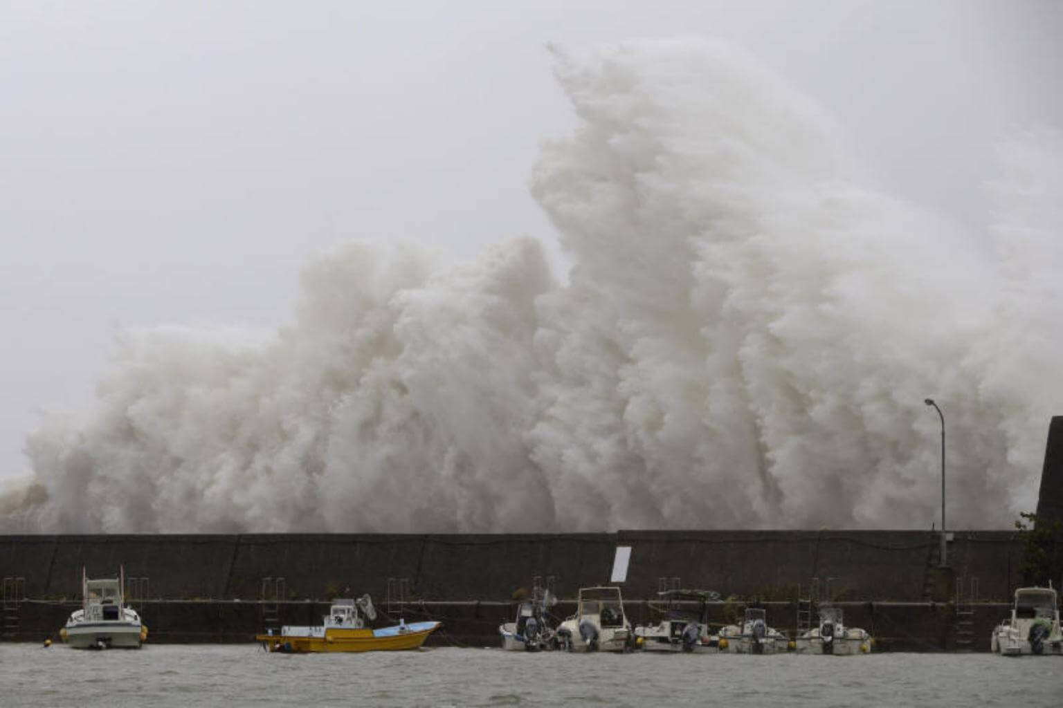 Television footage showed high foamy waves smashing into breakwaters in Wakayama, while roof tiles were ripped off homes in neighbouring Mie.