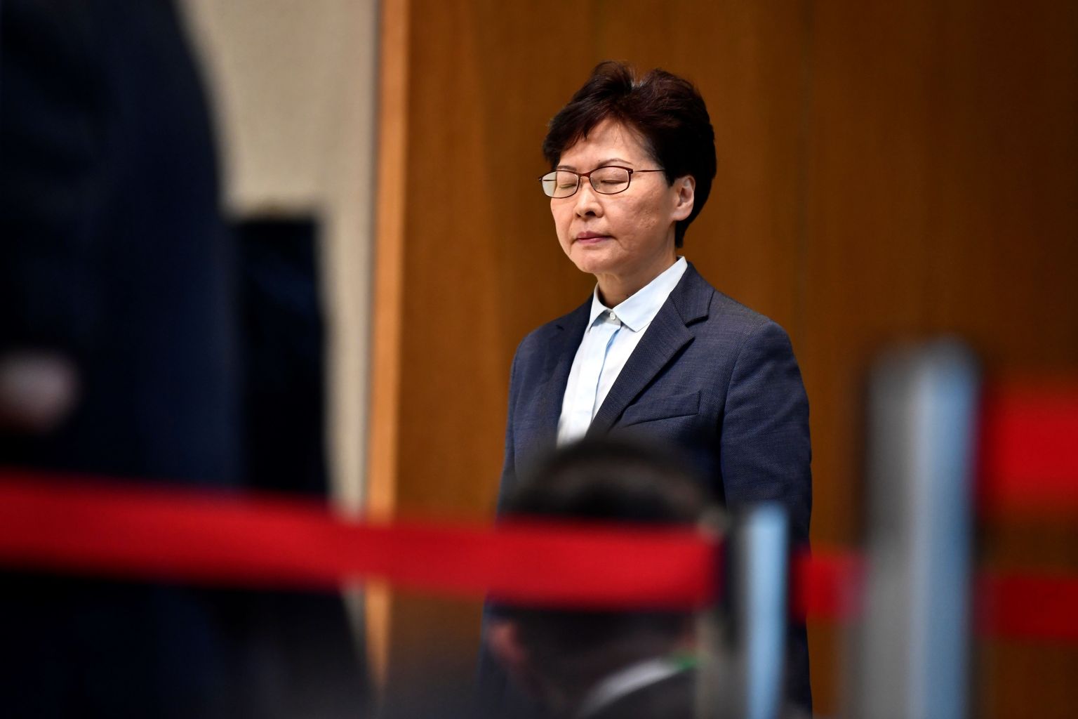 Hong Kong Chief Executive Carrie Lam arrives before addressing the media at a press conference in Hong Kong on July 22, 2019.