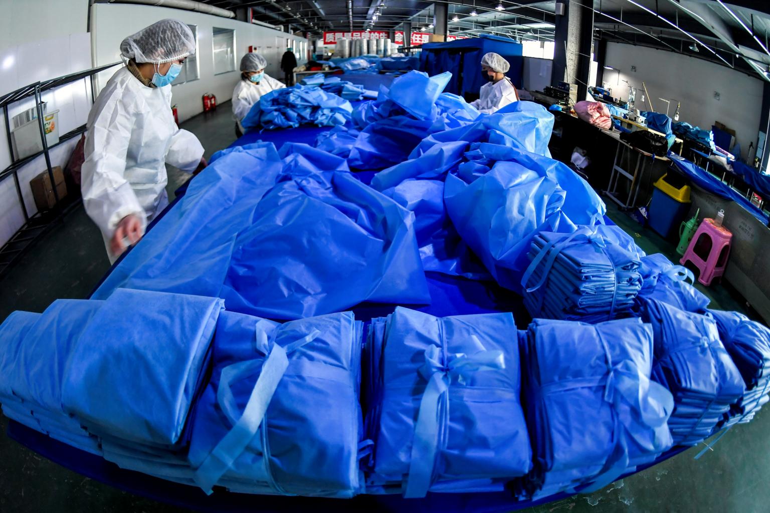 Workers manufacturing protective equipment at a factory in Urumqi, Xinjiang Uighur autonomous region, on Jan 27, 2020.
