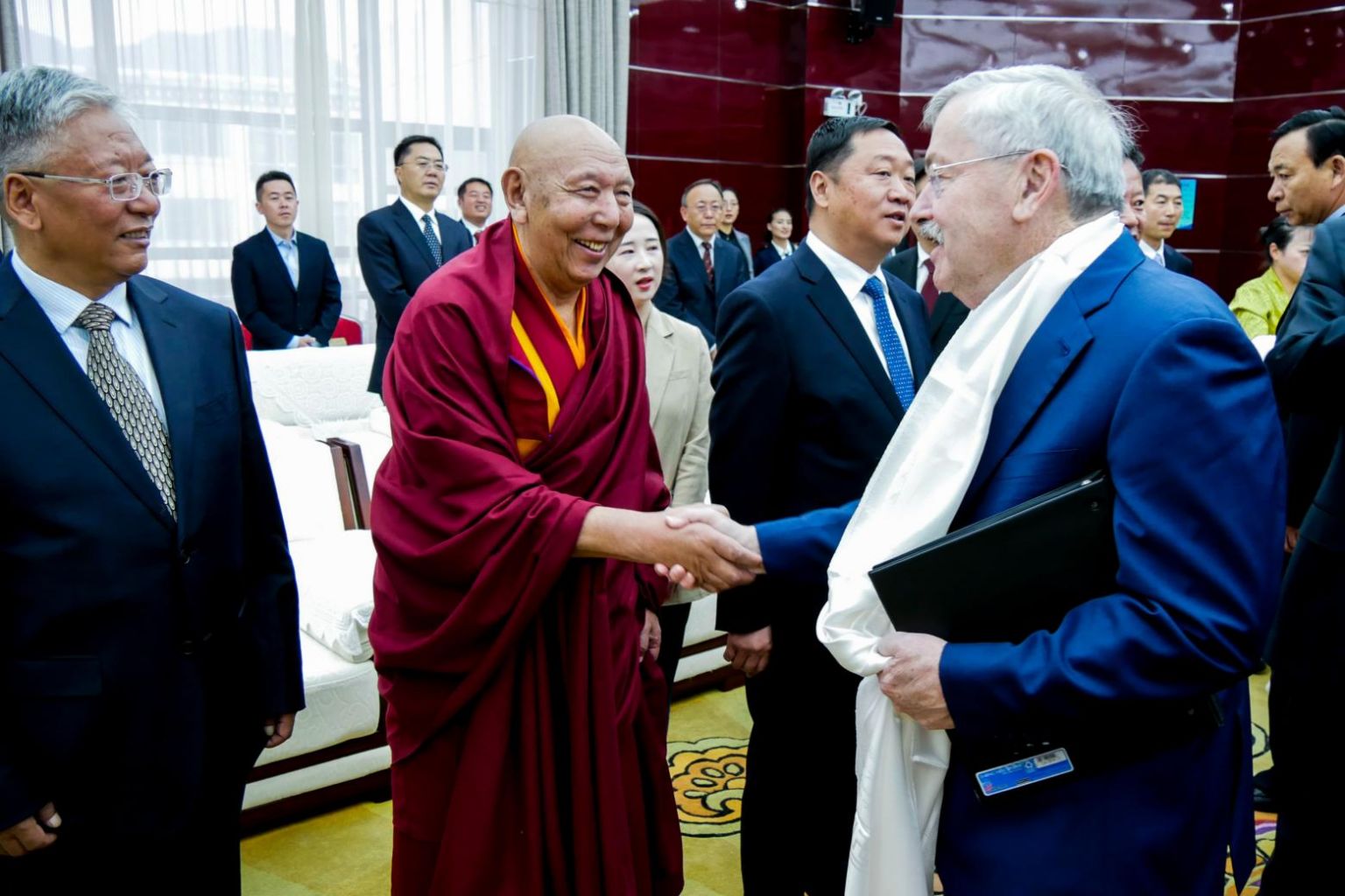 US Ambassador to China Terry Branstad (right) meeting local government and Communist Party leaders in Lhasa, in China's western Tibet Autonomous Region, on May 22, 2019.