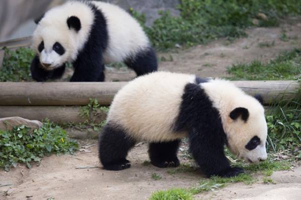 The female twins could only respond with a confused look when hearing their names called out in the Sichuan dialect, but are still trying to fathom the words like "have you eaten up" and "did you have a good time" in local Sichuan dialect, according to Mr Luo Yunhong, the pandas' breeder.