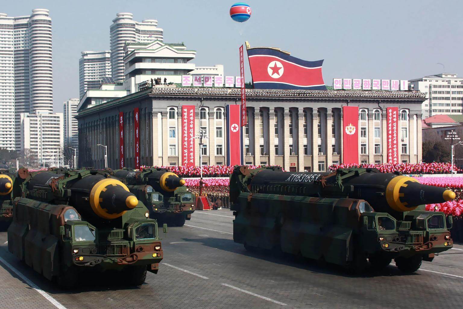 Intercontinental ballistic missiles on display during a military parade to mark the 70th anniversary of the Korean People's Army at Kim Il Sung Square in Pyongyang on Feb 8, 2018.