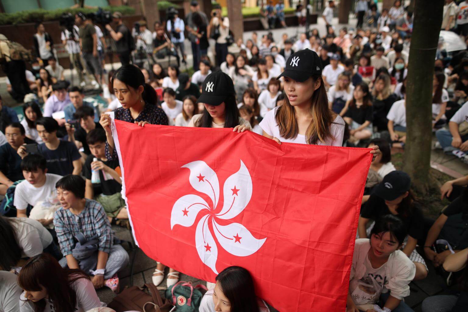The former British colony on Sunday endured its largest protests since the handover to Chinese rule in 1997. Violent clashes rocked the city on Wednesday, and police used tear gas and rubber bullets to disperse protesters.