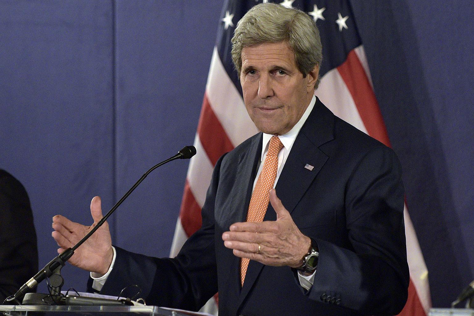 US Secretary of State John Kerry addressing a press conference on May 16 in Vienna, Austria.
