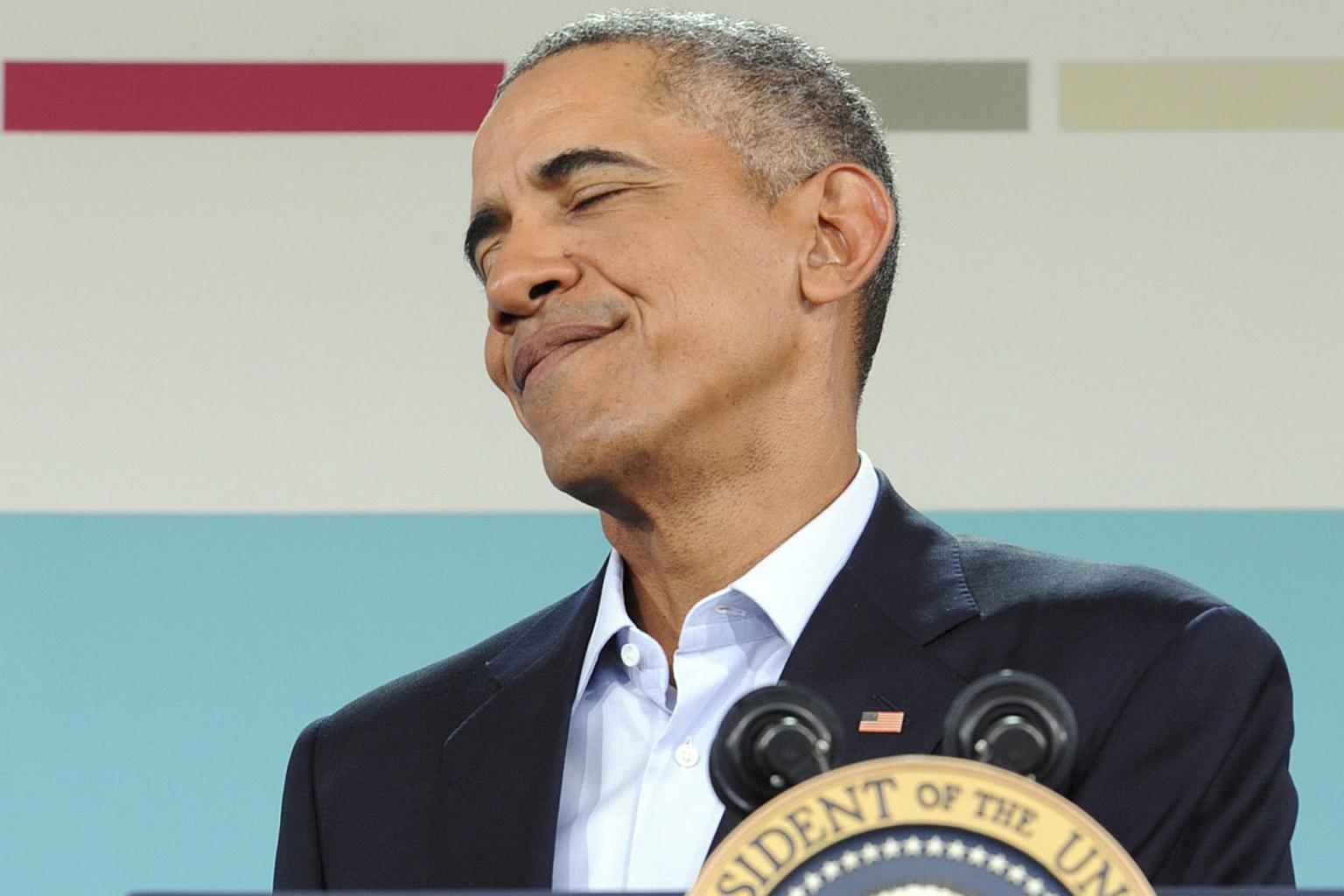 US President Barack Obama reacts as he speaks during a press conference on the last day of the US-Asean Summit, at Sunnylands, California.